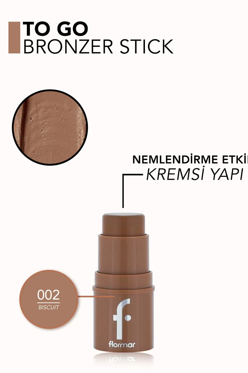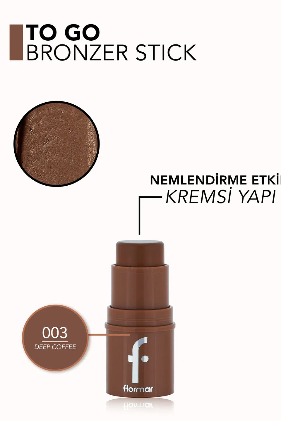 Flormar To Go stick bronzer offers the opportunity to increase your pigment in many times as you wish. In this way, it becomes possible to create a significant effect in both minimal or assertive makeup in natural makeup. Flormar To Go creamy bronzer's warm and impressive skin makeup appearance with its easy-to-carry structure and easy-to-carry stick form is now with you everywhere! Come on, make room for Flormar To Go Natural Finish & Moisturizing Creamy Stick Bronzer in your makeup routine to highlight your natural beauty with a charming touch!